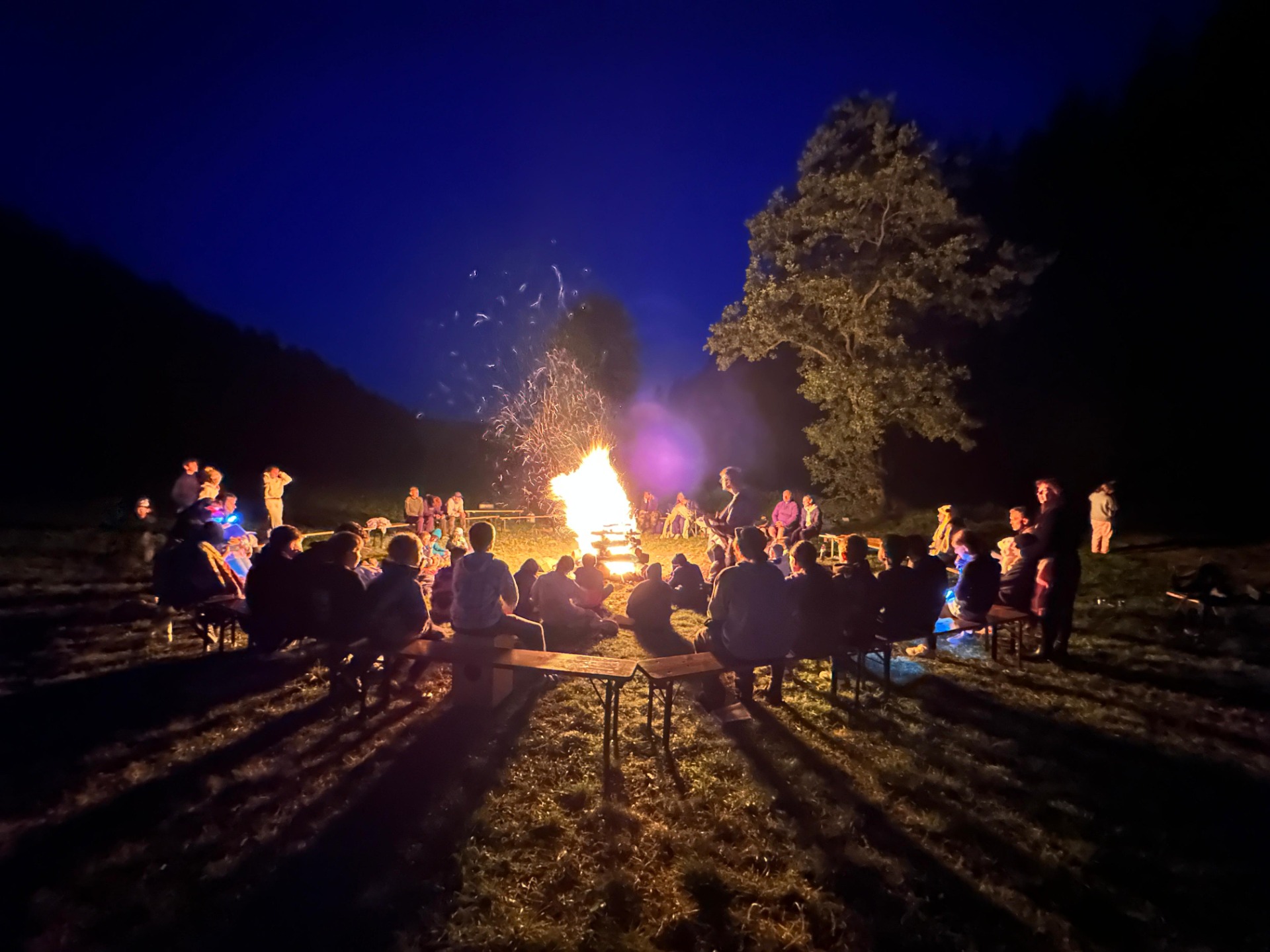 V úterý večer jsme měli speciální program – každá skupina vyfasovala své vlastní ohniště a udělali si táborák. Po tábořišti nám tedy svítilo pět táboráků a kolem ohně vykládalo hned patero trpasličích skupinek. Nevěřili byste, jak krásnou atmosféru se vedoucím v tak malém kruhu podařilo vytvořit.